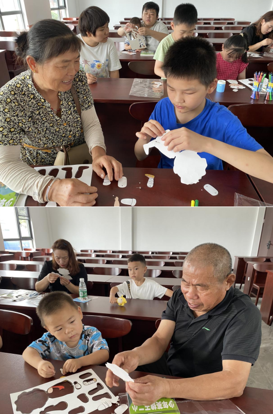 活動(dòng)現(xiàn)場(chǎng),志愿者帶領(lǐng)孩子們一同學(xué)習(xí)《小英雄王二小》的繪本故事,王二小只是一個(gè)普通的放牛娃,為了掩護(hù)老鄉(xiāng)和革命干部,二小不顧自己的生命危險(xiǎn),把敵人帶進(jìn)了八路軍的埋伏圈。氣急敗壞的日本鬼子用槍尖把二小摔死在大石頭上面。干部和老鄉(xiāng)們脫離了危險(xiǎn),小英雄王二小英勇犧牲了。提醒孩子們生活在幸福和平年代的我們不要忘記革命先烈,為了我們今天幸福生活付出了寶貴的生命。隨后,志愿者帶領(lǐng)孩子們作了小紅軍涂色人偶,“涂一涂,剪一剪,貼一貼”一個(gè)個(gè)靈動(dòng)鮮活的人偶呈現(xiàn)在了眼前,孩子們快樂(lè)地分享著自己的作品。通過(guò)閱讀故事、制作人偶,告訴孩子們要學(xué)習(xí)王二小愛(ài)祖國(guó)的精神,只有我們的國(guó)家強(qiáng)大了,才會(huì)在國(guó)際上受到尊重,才不會(huì)被侵略。