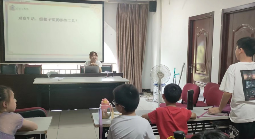 李銳同學(xué)為同學(xué)們上了第一節(jié)勞動(dòng)教育課。李銳同學(xué)先向小朋友們介紹生活中常見的紐扣種類和縫制方法,增加小朋友們的生活常識(shí)。手工環(huán)節(jié),在仔細(xì)叮囑小朋友們各類安全注意事項(xiàng)后,李銳同學(xué)耐心地教小朋友們?nèi)绾慰p扣子。穿針、打結(jié)、走線、收尾,李銳同學(xué)耐心講解、細(xì)致演示,小朋友們也認(rèn)真聆聽,用紐扣在方巾上“排兵布陣”,全神貫注地投入到紐扣縫制的行列中。在一眾志愿者的協(xié)助下,小朋友們都完成了紐扣縫制,成為了“巧手小裁縫”。