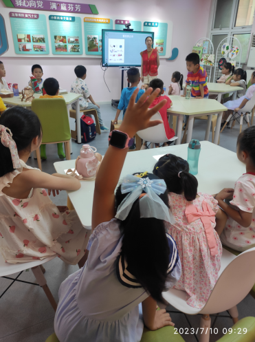 本次活動(dòng)分為“看圖猜古詩(shī)”和“我給古詩(shī)畫幅畫”兩大環(huán)節(jié)。首先,在志愿者的帶領(lǐng)下,小朋友們結(jié)合圖案對(duì)古詩(shī)內(nèi)容進(jìn)行猜測(cè),最終匯聚成正確答案。通過(guò)形象的圖案,孩子們更直觀地理解古詩(shī)的含義及所要表達(dá)的感情,將詩(shī)情畫意表現(xiàn)的淋漓盡致。