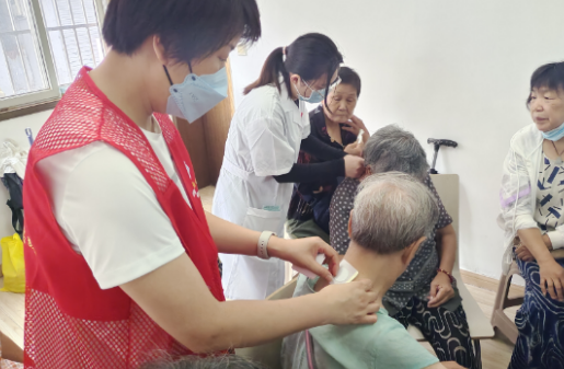 接著志愿者們依次詢問老人們的身體狀況并為老人們貼三伏貼,三伏貼是一種傳統(tǒng)中醫(yī)的治療法,結合針灸、經(jīng)絡與中藥學,以中藥直接貼敷于穴位,經(jīng)由中藥對穴位產(chǎn)生微面積化學性、熱性刺激,達到治病、防病的效果。