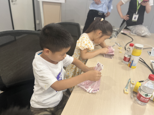 在“點鈔大賽”環(huán)節(jié)中,工作人員給大家講解并示范了最常見的點鈔方法。小朋友們一個個拿著點鈔專用練習(xí)券躍躍欲試。“左手夾著紙鈔,食指抵住,大拇指輕輕扶著紙幣,右手大拇指和食指動起來,就可以點鈔了。”工作人員邊示范點鈔的手法、邊糾正大家的點鈔姿勢。點鈔大賽最后,工作人員向“小小銀行家們”頒發(fā)了點鈔小能手獎品,鼓勵小朋友們積極參與此類科普宣傳活動,在實踐中學(xué)習(xí)知識、開拓眼界。