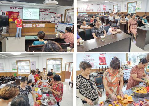 活動中,志愿者首先向居民們普及了優(yōu)生優(yōu)育、生殖健康等科普知識,引導(dǎo)女性樹立科學(xué)、文明、進(jìn)步的婚育觀念。隨后為居民們解讀了南京市最新生育保險(xiǎn)政策營造生育友好氛圍?;顒幼詈?,志愿者拿出事先準(zhǔn)備好的水果,桌布、刀具、碗勺等材料,帶領(lǐng)婦女們一起制作水果撈。志愿者為大家講述了制作的要點(diǎn)后,婦女們就迫不及待的動手嘗試起來,大家分工協(xié)作,沒一會兒功夫,一碗碗水果撈就制作完成了,王姐笑著說:“我們也算實(shí)現(xiàn)水果撈自由了”。