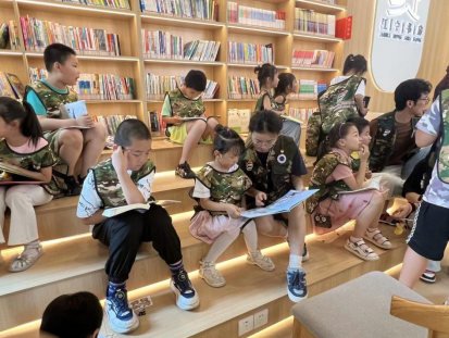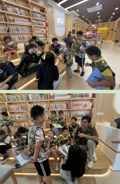 本次讀書分享會于下午兩點開始,本次活動主持人由暑期社會實踐調(diào)研團成員虞長樂擔任。根據(jù)此次活動流程和內(nèi)容,主持人將12名小朋友分成兩組。為了激發(fā)小朋友們的愛國情懷:通過閱讀國防相關(guān)書籍、了解國家的歷史和軍事背景,小朋友們可以增強對國家安全的意識?;顒娱_始,在主持人和暑期社會實踐調(diào)研團志愿者們的幫助下,小朋友挑選自己喜歡的書籍并安靜閱讀。