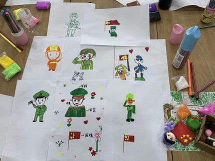 上午9點(diǎn)國(guó)防手工藝活動(dòng)開(kāi)始,暑期社會(huì)實(shí)踐調(diào)研團(tuán)成員朱嘉偉擔(dān)任此次活動(dòng)主持人,主持人根據(jù)此次活動(dòng)的內(nèi)容將12名小朋友分成3組,活動(dòng)開(kāi)始,暑期社會(huì)實(shí)踐調(diào)研團(tuán)志愿者為小朋友們發(fā)放畫(huà)筆與繪畫(huà)紙張,小朋友們利用不同顏色的畫(huà)筆,畫(huà)出他們心目中的“軍人形象”,20分鐘后,每個(gè)小朋友紛紛展示他們的繪畫(huà)作品,并說(shuō)出他們的想法和心目中的軍人是什么樣的,隨后,每個(gè)小朋友自己動(dòng)手發(fā)揮想象力和創(chuàng)造力,利用超輕粘土材料做出自己心目中的軍人、坦克、飛機(jī)等模型,每個(gè)手工模型的背后,都飽含著兒童對(duì)現(xiàn)代國(guó)防軍事的憧憬和熱愛(ài)。