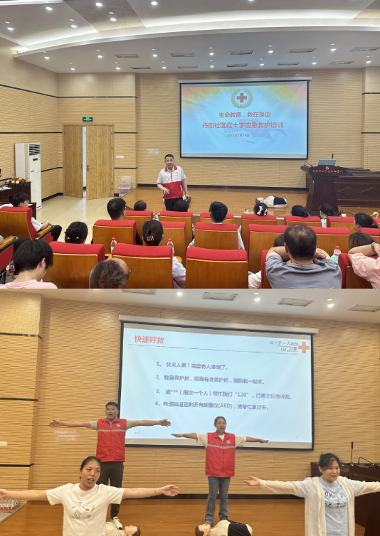 為進(jìn)一步普及急救知識(shí),提高社區(qū)居民急救技能,7月14日,南京市江寧區(qū)橫溪街道丹陽社區(qū)通過邀請(qǐng)紅十字會(huì)專業(yè)救護(hù)師在丹陽中學(xué)報(bào)告廳,面向社區(qū)工作人員、企業(yè)安全員、學(xué)校教師、物業(yè)及部分轄區(qū)居民開展應(yīng)急救護(hù)培訓(xùn)活動(dòng)。