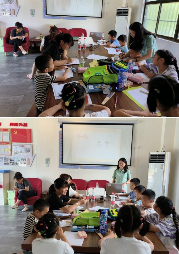 “小朋友們,你們看黑板上的這個(gè)偏旁,先看看老師是怎么寫的再動(dòng)筆。”“老師老師,我已經(jīng)可以寫很難的第四個(gè)字了!”為幫助家長解決漫長暑期沒空陪伴孩子,讓孩子不沉迷電子產(chǎn)品,豐富孩子們的暑期生活,在“雙減”政策的指引下,南京市江寧區(qū)湖熟街道尚橋社區(qū)聯(lián)合南京曉莊學(xué)院文學(xué)院“無邊界”教育實(shí)踐團(tuán),在陡門口網(wǎng)格站開辦愛心暑托班,解決家長照看難題,助力孩子們健康快樂成長。