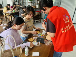 活動最后,志愿者引領(lǐng)大家走進(jìn)馬賽克的藝術(shù)世界,志愿者先介紹了制作杯墊所需使用的工具、材料、制作步驟以及注意事項(xiàng)。隨后大家按照步驟,通過發(fā)揮自己的想象力和創(chuàng)造力,擺出獨(dú)具風(fēng)格的馬賽克杯墊造型。然后大家在縫隙里填滿半透明填縫劑,用海綿清除石頭表面殘留的填縫劑。一個個普通的杯墊在婦女們的巧手下被賦予了新的生命。