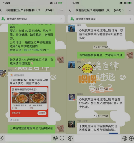 掌上云社區(qū)是南京市棲霞區(qū)邁皋橋街道秋韻園社區(qū)鏈接居民與社區(qū)的重要紐帶,其中2個重要組成部分分別為掌上云社區(qū)群和掌上云小程序,通過一年多的沉淀和鋪墊,目前在掌上云社區(qū)活躍的居民占比超過60%。社區(qū)通過掌上云社區(qū)“紅韻智家”社區(qū)專線發(fā)布各類信息,有社區(qū)活動、社區(qū)動態(tài)、科普知識、生活小技巧等豐富多彩的板塊,除此之外還有社區(qū)居民議事、為民項(xiàng)目投票吸引居民多多參與社區(qū)基層治理,在后疫情時代,社區(qū)工作人員通過統(tǒng)計(jì)群內(nèi)信息內(nèi)容發(fā)現(xiàn),居民們對招聘信息的關(guān)注度變高了。