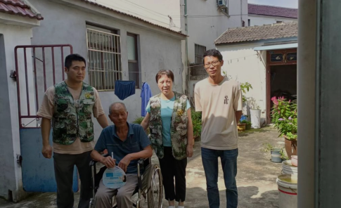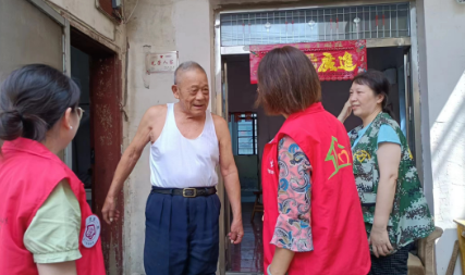 “大爺您好,我是社區(qū)服務(wù)站的,來(lái)看您了!”“最近身體怎么樣啊?”“生活上有什么不方便的嘛?”志愿者們你一句我一句的問(wèn)候著老人,熱鬧的氛圍沖破屋頂,給平時(shí)冷清房間里帶來(lái)了不少生氣與活力。在最后,還囑咐他們?cè)诟邷乜崾罾?,做好防暑降溫工作,不要一味為了?jié)省電費(fèi),傷害到身體。