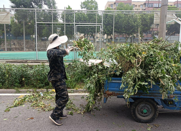 活動中,退役軍人們身穿迷彩服和志愿“紅馬甲”,戴上手套,拿起掃帚,同城市治理“藍馬甲”一起,全面清理小區(qū)道路旁綠化帶及周邊的雜草、垃圾。在烈日酷暑的曝曬下,大家深入灌木叢、隔離樹,拾撿雜物,清理枯枝,不怕臟,不怕累,熱情高漲,干勁十足,哪怕衣衫早已被汗液所浸濕,也不放過一個衛(wèi)生死角。經(jīng)過上午下午的全力奮戰(zhàn),小區(qū)整體環(huán)境得以優(yōu)化,居民們紛紛點贊。