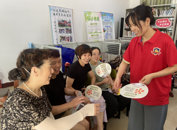 化纖新村的網(wǎng)格員將網(wǎng)格員職能制作成了宣傳扇子在轄區(qū)內(nèi)發(fā)放,告知轄區(qū)居民網(wǎng)格員職能包括信息采集、隱患排查、人口管理、心理咨詢(xún)、矛盾化解、治安防范、政策宣傳、便民服務(wù)等,宣傳時(shí)網(wǎng)格員主動(dòng)亮明身份,耐心為居民答疑解惑,通過(guò)面對(duì)面宣傳交流的方式,充分調(diào)動(dòng)居民參與度和活躍度,增強(qiáng)了群眾對(duì)網(wǎng)格員工作的認(rèn)同感和滿(mǎn)意度,強(qiáng)化了宣傳效果。此外,網(wǎng)格員還搜集整理轄區(qū)居民反映的合理化的建議及意見(jiàn),及時(shí)上報(bào)反饋,能及時(shí)解決的立即解決,盡力做到讓居民滿(mǎn)意。