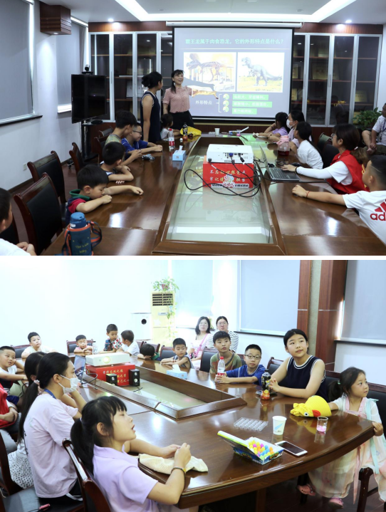 在活動(dòng)中,社區(qū)志愿者以生動(dòng)形象的語(yǔ)言向青少年介紹了人類(lèi)發(fā)現(xiàn)恐龍的歷史及研究進(jìn)程,青少年們聚精會(huì)神地傾聽(tīng)著,仿佛置身于一個(gè)神秘的歷史世界。隨后,志愿者們以提問(wèn)互動(dòng)的形式向孩子們科普了地球生物的演化順序,簡(jiǎn)單概括了不同時(shí)期恐龍的種類(lèi)與特點(diǎn)。鼓勵(lì)大家談?wù)勛约簩?duì)恐龍的看法和認(rèn)知,激發(fā)了青少年們的思考和參與。