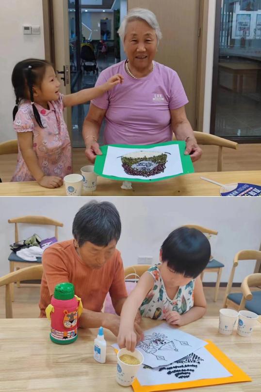 隨后,社區(qū)志愿者拿出事先準備好的紅豆、綠豆、大米等五谷雜糧,帶領(lǐng)居民進行創(chuàng)意繪畫。居民們?nèi)硇耐度肫渲校l(fā)揮自己的無限的想象,將眼前的五谷雜糧拼貼成一幅幅令人嘆為觀止的作品。他們將紅豆、綠豆和大米運用得恰到好處,形成了豐富多彩的圖案和形象,仿佛每一顆五谷雜糧都蘊含著一種獨特的魔力。