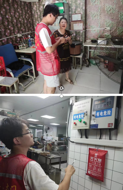 在檢查中,安全員和志愿者對商戶的消防器材進(jìn)行了逐一檢查,檢查了滅火器等是否在有效期內(nèi);同時重點對轄區(qū)小餐飲店的廚房燃?xì)庠O(shè)施和燃?xì)庑孤﹫缶鬟M(jìn)行了檢查,檢查是否存在安全設(shè)施安裝不到位等情況。在檢查中發(fā)現(xiàn)的滅火器配備不足等問題,及時發(fā)饋給商家,督促商家及時整改。并告知商戶安全員會及時跟進(jìn),如果整改不到位,將上報給相關(guān)執(zhí)法部門。