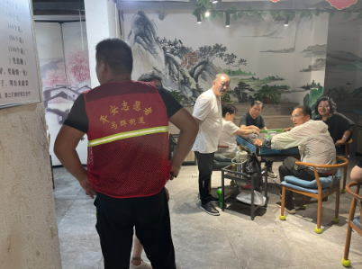 本月南京市棲霞區(qū)馬群街道馨康苑社區(qū)轄區(qū)的“西來順茶社棋牌室”、被樓上居民投訴夜間噪音擾民。社區(qū)環(huán)保工作人員隨即上門了解情況。