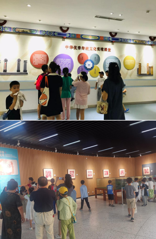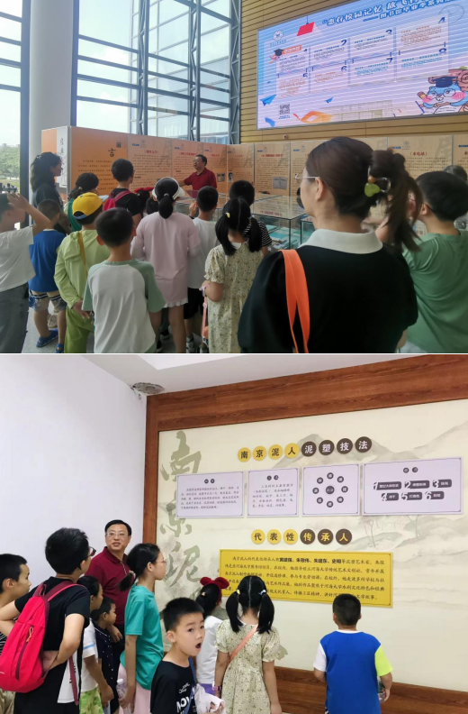 研學(xué)中,在圖書館田劍君老師的帶領(lǐng)下,小朋友們依次參觀了河海大學(xué)圖書館百年發(fā)展史、金壇刻紙展、密集書庫(kù)、外文書庫(kù)、噴泉魚池、南京泥人展和《紅樓夢(mèng)》中的茶文化主題展,大家認(rèn)真傾聽,在浩瀚書海與精美展覽中感受著圖書館的歷史變遷與中華優(yōu)秀傳統(tǒng)文化的魅力,讓閱讀種子與民族精神在孩子們心中生根發(fā)芽。