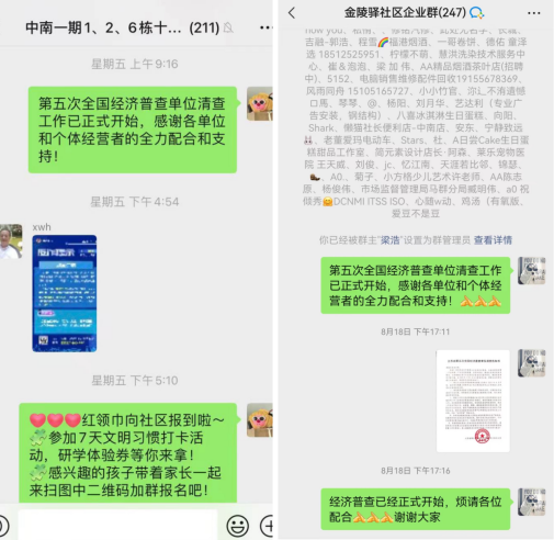 南京市棲霞區(qū)馬群街道金陵驛社區(qū)在開展經(jīng)濟(jì)普查宣傳過程中,創(chuàng)新方式方法,利用掌上云平臺,讓“五經(jīng)普”不斷深入人心,提升居民對“五經(jīng)普”的知曉度、配合度、參與度、信任度,為普查工作的全面鋪開打下了堅實基礎(chǔ)。