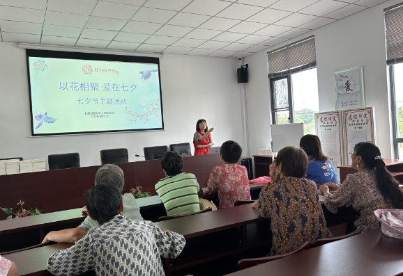 接下來,一位講解員結(jié)合PPT向大家講解七夕節(jié)的起源、故事和習(xí)俗。大家聚精會神地聽著,了解到七夕節(jié)源自于古代傳說的牛郎織女的故事,以及紙鵲與紙鶴的制作習(xí)俗等傳統(tǒng)文化細(xì)節(jié)。參與者們紛紛拿出手機記錄重要內(nèi)容,以便今后進(jìn)一步了解和傳承。