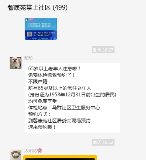 “沒想到還有年輕人的免費(fèi)體檢”、“社區(qū)‘掌云’群真是方便,平時我很少關(guān)注樓道公示欄信息,空閑之余看到群內(nèi)推送的免費(fèi)體檢消息,已前往體檢”、“共享健康信息,便民更惠民”......近日,對于南京市棲霞區(qū)馬群街道馨康苑社區(qū)“掌云”社區(qū)群內(nèi)推送的健康體檢信息,居民們紛紛留言稱贊道。