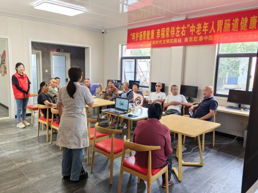 夏季是胃腸道疾病的高發(fā)季節(jié),在當(dāng)今社會(huì)快節(jié)奏的生活中,更多的人開始不規(guī)律的飲食或者食用不干凈的食物,種種習(xí)慣不斷破壞著人類胃腸道健康。為進(jìn)一步加強(qiáng)南京市江寧區(qū)湯山街道建設(shè)村中老年人對(duì)的胃腸道健康認(rèn)識(shí),提高村民生活質(zhì)量,加強(qiáng)其對(duì)胃腸疾病的關(guān)注,做到早預(yù)防、早治療,充分發(fā)揮胃腸病專業(yè)診療機(jī)構(gòu)作用。建設(shè)村新時(shí)代文明實(shí)踐站聯(lián)合南京肛泰中醫(yī)醫(yī)院開展我為群眾辦實(shí)事“呵護(hù)腸胃健康,幸福常伴左右”中老年人胃腸道健康知識(shí)科普活動(dòng)。