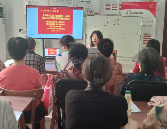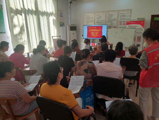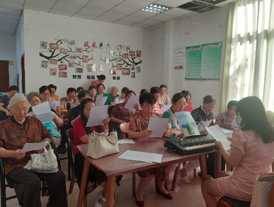 2023年9月1日,果場(chǎng)社區(qū)關(guān)工委、居民學(xué)校依托社區(qū)新時(shí)代文明實(shí)踐站,聯(lián)合南京萊臻老年大學(xué),三槐長(zhǎng)者照護(hù)果場(chǎng)站點(diǎn)在社區(qū)綜合文化服務(wù)中心,組織社區(qū)老年居民開展合唱興趣班志愿服務(wù)活動(dòng)。