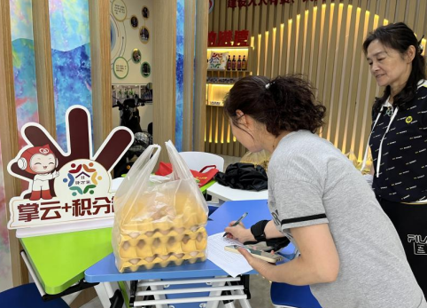 活動當天,前來兌換的居民憑著掌上云平臺線上商城的兌換訂單,排著隊有序兌換,時不時還相互交流自己上個月的“賺分技巧”。“積分不太夠,這次只能換50個雞蛋,下個月我要多參與志愿活動,攢攢積分。”志愿者杜阿姨說道。積分換來的不只是看得見的實惠,更是一種發(fā)自內(nèi)心的參與感。