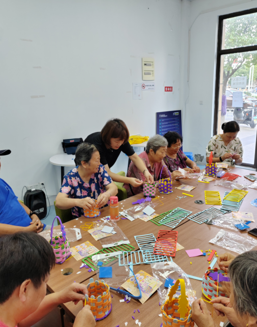 現(xiàn)場,老年朋友們化身好學生,認真聽講關于制作手工花籃的要點,趙老師一步一步細心教導,講解注意事項,大家用靈活的雙手,時而折,時而剪,一會兒功夫,一個個純手工“打造”的精美小花籃就初現(xiàn)成型,再用針線縫合,很快,老人拿著自己制作的成品花籃,個個都是做工精美,且形狀多樣。大家邊制作邊交流,溝通心得體會,分享各自的制作靈感,拉進了彼此間的關系,增進了感情,手工活動不僅有助于提高老年人的動手能力,還豐富了大家的精神文化生活,讓老人們在娛樂的同時鍛煉了身體。