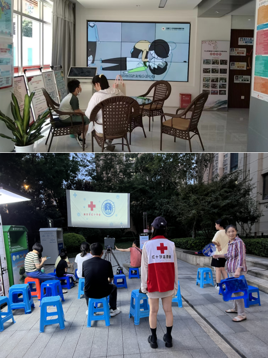 同時(shí),為了更好地普及紅十字救護(hù)知識(shí)和技能,社區(qū)利用大屏幕設(shè)備和天街大屏,播放了一系列紅十字宣傳片。這些宣傳片涵蓋了疾病預(yù)防、突發(fā)事件處理、心肺復(fù)蘇等多個(gè)方面的內(nèi)容,生動(dòng)形象地展示了急救操作步驟和技巧。居民們?cè)诖笃燎罢J(rèn)真聆聽(tīng),不時(shí)稱贊這些宣傳片的實(shí)用性和教育性。