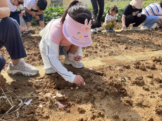 隨后,參與活動的家庭們一同前往位于兒童童趣樂園的大蒜種植區(qū)域。在溫馨的氛圍中,孩子們熱情洋溢地佩戴著園丁帽,手持鏟子和大蒜種子,開始一段奇妙的耕種之旅。他們雖然是新手,但在得到專業(yè)園丁的指導下,孩子們短時間內(nèi)掌握了種植的技巧。大家互相幫助,共同完成了大蒜的種植工作。孩子們面對一簇簇蓬勃生長的大蒜,充滿興奮地跳躍著,感受著勞動的成果和草木生長的奇妙。