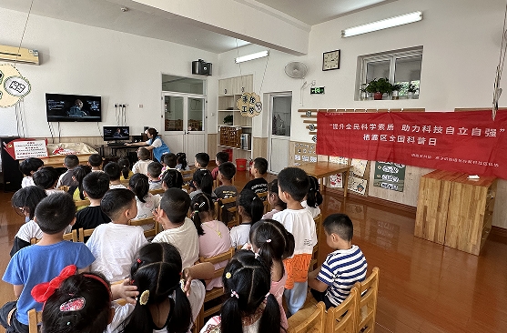 活動(dòng)現(xiàn)場(chǎng),化纖新村社區(qū)科協(xié)志愿者到化纖新村幼兒園,為幼兒園大班的小朋友們播放科技類(lèi)電影《獨(dú)行月球》,活動(dòng)中小朋友們聚精會(huì)神地觀看電影,了解科幻世界,享受科幻電影帶來(lái)的視覺(jué)沖擊與樂(lè)趣,打開(kāi)想象力的窗戶(hù)。觀影結(jié)束后小朋友們暢所欲言,分享自己心中的科幻,傳送門(mén)可以直接傳送到月球上、地球有能量防御罩直接擋住隕石沖擊、房子建在海底隨時(shí)與海洋動(dòng)物互動(dòng)等等,難掩孩子們觀影后激動(dòng)地心情。