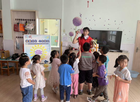 活動現(xiàn)場,社區(qū)志愿者通過講解社會、健康、語言、藝術(shù)等方面的知識,向孩子們傳授常見的情緒調(diào)節(jié)技巧和積極的心態(tài)培養(yǎng)方法,幫助他們建立積極的人生態(tài)度,并且告知他們做一個快樂的人的重要性。