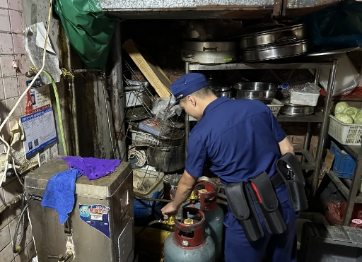 在馬群新街餐飲店中,工作人員對(duì)餐飲店后廚的燃?xì)馐褂们闆r進(jìn)行了記錄,與燃?xì)夤居涗涍M(jìn)行比對(duì)驗(yàn)查,對(duì)燃?xì)鈭?bào)警器、閥門、軟管等進(jìn)行了現(xiàn)場(chǎng)檢查。社區(qū)安全巡查員向商戶進(jìn)行了燃?xì)獍踩跋腊踩男麄?,了解商戶?dāng)前的保障措施,及相關(guān)困難。