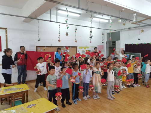 今年中秋過后緊接著就是國慶,雙節(jié)同慶,燈籠制作完成后,由幼兒園老師帶領(lǐng)大班的小朋友合唱了一曲國歌,為即將到來的祖國的生日送上祝福,合唱結(jié)束后,每個(gè)小朋友一手拿著燈籠,一手拿著國旗進(jìn)行合照,為此次的雙節(jié)同慶畫上圓滿的句號。