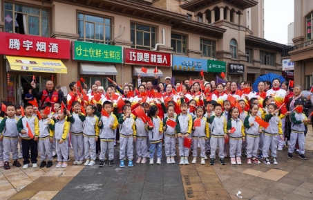 活動(dòng)最后,《歌唱祖國》音樂響起,來自東花港幼兒園的小朋友、金陵驛社區(qū)“驛萬家”志愿者等74人現(xiàn)場同聲合唱,共慶祖國74周年華誕。