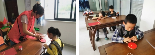 活動(dòng)最后,孩子們一起制作原木片國(guó)旗畫。志愿者先為孩子們講解制作步驟,并發(fā)放制作材料。孩子們拿到材料后,在原木片上認(rèn)真仔細(xì)的抹上紅色顏料,等顏料干了以后再粘上五角星,一面面原木片國(guó)旗就制作完成了,孩子手拿作品滿眼都是驕傲。什么顏色最美,當(dāng)屬中國(guó)紅!