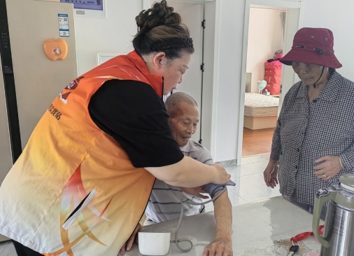 行動(dòng)不便的居民,志愿者主動(dòng)上門測(cè)量,居民感到十分暖心。