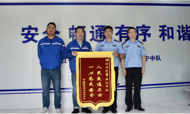 交警助寧馬,溫暖百姓心。在雙節(jié)來臨之際,中鐵隧道局集團(tuán)寧馬五工區(qū)向江寧交警濱江中隊(duì)獻(xiàn)上一面錦旗,對(duì)全體指戰(zhàn)員辛勤地工作作風(fēng)表示衷心的感謝。