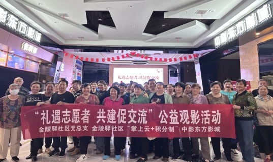 近日,金陵驛社區(qū)聯(lián)合黨建共建單位、掌云+積分制聯(lián)盟商戶中影東方影城開展“禮遇志愿者 共建促交流 ”公益觀影活動(dòng)。