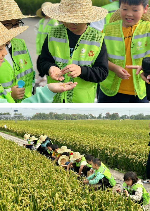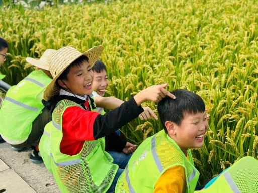 田間歡樂多,大自然也是最好的通識(shí)教育老師。小朋友們?cè)谥驹刚叩膸ьI(lǐng)下走進(jìn)淳化現(xiàn)代農(nóng)業(yè)產(chǎn)業(yè)園的水稻種植基地。“水稻成熟過程分為4個(gè)時(shí)期:乳熟期、蠟熟期、黃熟期和枯熟期?,F(xiàn)在已經(jīng)進(jìn)入到蠟熟期了,到月底差不多就可以收割了......”在水稻試驗(yàn)田旁,志愿者給小朋友們細(xì)細(xì)地科普水稻生長的相關(guān)知識(shí)。