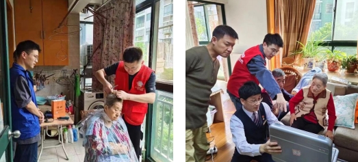 該戶家庭里有位百歲老人是前不久剛從老家接到這里來生活的,網(wǎng)格員同志對這戶家庭也是尤為關(guān)注經(jīng)常聯(lián)系看是否有需要社區(qū)幫助的地方。當(dāng)?shù)弥先诵枰戆l(fā)的時候立馬聯(lián)系了轄區(qū)內(nèi)一家理發(fā)店老板馬師傅,馬師傅聽到上門為百歲老人理發(fā)也是義不容辭的答應(yīng)了。