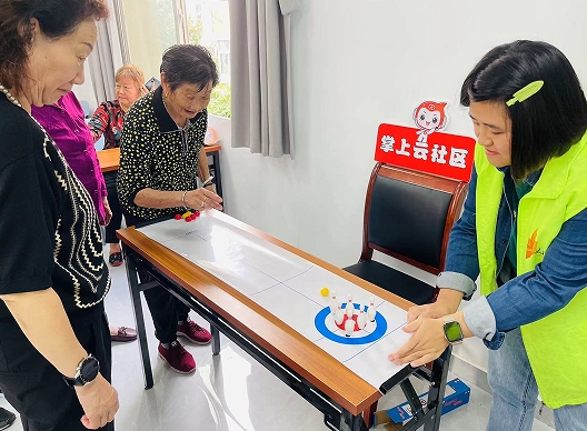 本次活動(dòng)通過(guò)“掌上云社區(qū)”進(jìn)行線上宣傳、報(bào)名。吸引了50余名老年居民參與?;顒?dòng)一開(kāi)始,堯化新村社區(qū)“掌上云社區(qū)”負(fù)責(zé)人湯超先向各位居民介紹了掌上云社區(qū)目前的情況,并宣傳“掌上云社區(qū)”取得的成績(jī),呼吁居民做好群內(nèi)小主人。隨后娛樂(lè)活動(dòng)正式開(kāi)啟,桌上保齡、夾彈珠、推瓶奪寶一個(gè)個(gè)項(xiàng)目讓大家玩的不亦樂(lè)乎。其中,“推瓶奪寶”項(xiàng)目的人氣最高,大家都想一展身手,迅速在項(xiàng)目位置排起了長(zhǎng)隊(duì),活動(dòng)中,老人們個(gè)個(gè)精神抖擻,有序選擇不同的項(xiàng)目進(jìn)行娛樂(lè),老人們樂(lè)在其中,玩得盡興,他們仿佛忘記了年齡、忘記了歲月,臉上洋溢出孩童般的笑容。