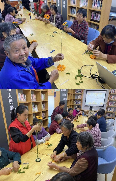 一朵朵向日葵既是對節(jié)日的祝福,也是對美好生活的向往。此次活動不僅提高了老人們動手操作的能力,并且讓他們感受到了一份尊重、一份真情、收獲到了一份快樂,度過了一個溫馨快樂幸福的重陽節(jié)。