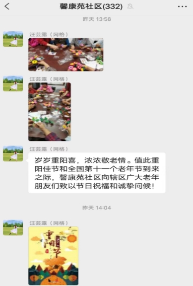 線上,社區(qū)依托“掌上云”各微信群,通過送節(jié)日祝福、發(fā)布倡議、優(yōu)秀典型宣傳、家庭助老展示等形式,祝福轄區(qū)廣大老人重陽節(jié)快樂,幸福安康同時,呼吁子女們常懷感恩之心,對父母多些關(guān)心、多些陪伴,倡議居民們傳承敬老愛老傳統(tǒng)美德,為老人們營造和諧溫馨的鄰里環(huán)境和社區(qū)環(huán)境,讓老年人樂享幸福晚年。“很有感觸,祝福所有老人節(jié)日快樂”、“老吾老以及人之老,善待今天的老人,就是善待明天的自己”、“傳統(tǒng)美德不能丟,敬老愛老需要我們實際踐行”、“百善孝為先,老人要的不多,一次探望,一通電話,就很滿足”、......居民們紛紛留言道。