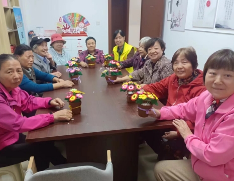 線下,10余名空巢獨居老人歡聚一堂,共同參與了“花樣過重陽”不織布盆花DIY活動。現(xiàn)場,老人們在志愿者老師的指導(dǎo)下,依次縫花盆、做填充、拼花朵、套花枝、插花束......近半個小時,一個個色彩絢麗的盆花就完成了,花盆中,菊花、太陽花、康乃馨錯落有致、爭奇斗艷。“這個重陽節(jié)真有意義,不僅能跟鄰里老人互動,還鍛煉了手和腦,完成的作品拿回去還能裝扮家里,今天很開心”。潘奶奶笑著表示道。
