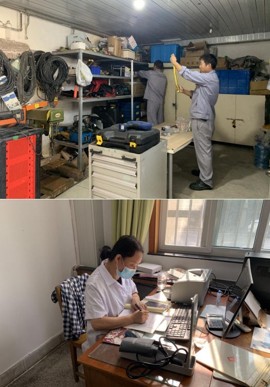 工作人員仔細檢查企業(yè)區(qū)域內(nèi)的安全設(shè)備,包括安全通道、消防器材以及安全警示標志等。