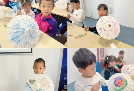 故事結(jié)束后,社區(qū)志愿者繼續(xù)帶領(lǐng)小朋友們開始了自己的手工油紙傘手繪制作。小朋友們一筆一畫,細致耐心地在空白油紙傘上繪制了精美的圖案,勾勒出獨具創(chuàng)意的畫作,繪出了童真童趣,畫出了和平世界的五彩斑斕。
