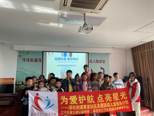 為進(jìn)一步加強(qiáng)青龍社區(qū)兒童防震減災(zāi)知識(shí)的宣傳教育,增強(qiáng)他們地震應(yīng)急處置能力,以期實(shí)現(xiàn)“教育一個(gè)孩子,影響一個(gè)家庭,帶動(dòng)一個(gè)社會(huì)”的目標(biāo)。南京市江寧區(qū)淳化街道青龍社區(qū)聯(lián)合南京市江寧區(qū)超越志愿服務(wù)中心于10月28日上午開(kāi)展了“地震科普 攜手同行”活動(dòng)。