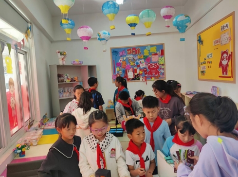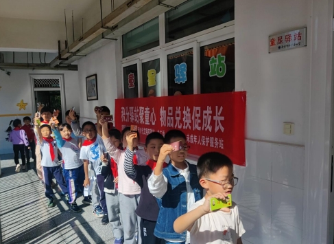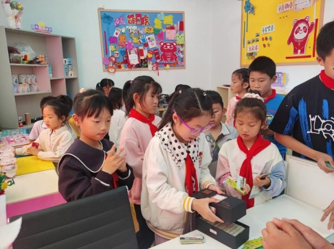 “你好,我想換一把尺子!”“我想要一枚童星勛章!”“我想為我們班級(jí)點(diǎn)一首歌。”剛吃完飯,孩子們就迫不及待地手持“五彩券”,在南灣營(yíng)小學(xué)“掌上云社區(qū)”驛站門口排起了長(zhǎng)長(zhǎng)的隊(duì)伍。兌換區(qū)的學(xué)生人頭攢動(dòng),每個(gè)孩子都在精心挑選自己心儀的物品,臉上都洋溢著快樂的笑容。同學(xué)們用自己努力贏得的五彩券換取自己心儀的獎(jiǎng)品,對(duì)他們自己來說是極大的獎(jiǎng)勵(lì),對(duì)其他同學(xué)來說也起到很大的鼓舞作用。