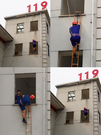 三是消防演練表演。表演有高樓攀爬,展現(xiàn)消防員“高速”;快速接通消防水帶,彰顯“高效”;高射水炮、“A”字噴水、噴頭變化等體現(xiàn)出消防員面對(duì)不同火情采取不同應(yīng)對(duì)的“專業(yè)”。