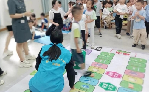 為了讓幼兒園的小朋友們進(jìn)一步認(rèn)識垃圾分類的意義,志愿者們用通俗易懂的語言和發(fā)放宣傳手冊向小朋友宣傳講解垃圾分類的目的和分類方式等相關(guān)知識,利用帶來的垃圾分類玩具桶,這樣也更直觀形象地為小朋友們對于可回收物、其他垃圾、有害垃圾、易腐垃圾的分類及如何投發(fā)做了詳細(xì)的講述,同時(shí)也通過擲骰子游戲方式引起小朋友們濃厚的學(xué)習(xí)樂趣,也準(zhǔn)備了小禮品給予能夠成功垃圾分類的小朋友,讓他們在檢驗(yàn)自己學(xué)習(xí)垃圾分類知識成果的時(shí)候也能收獲快樂。